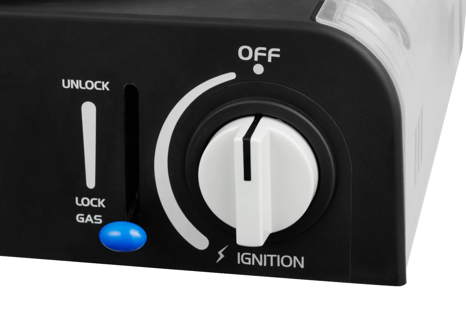 The fat pan collects any cooking residues when you use the BBQ grid, but also serves as a wind screen so that the burner does not blow out on windy days.