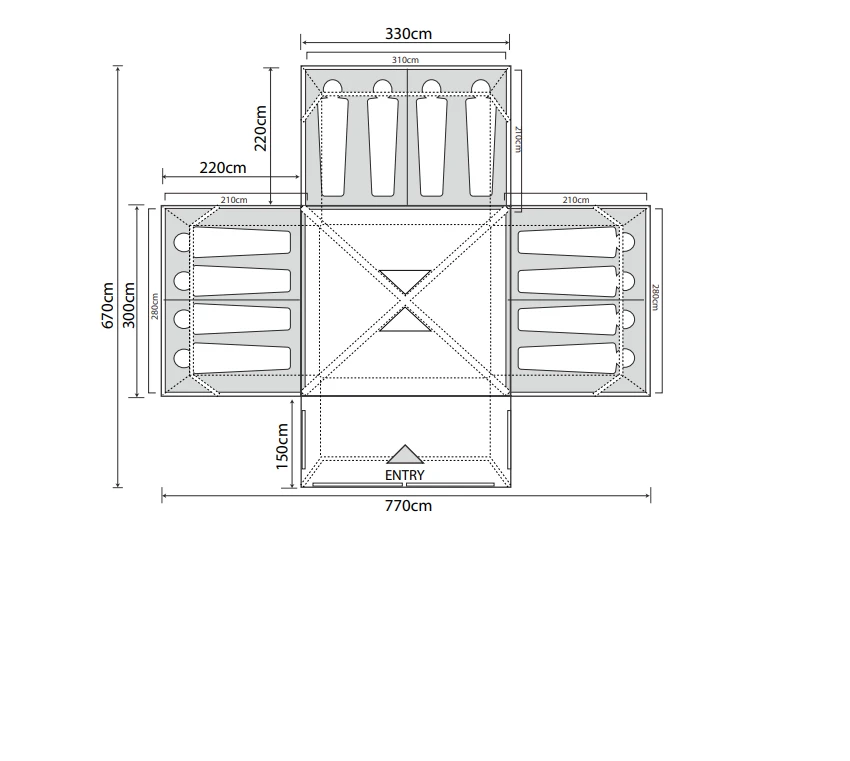 - TOTAL WEIGHT: 36.97kg (Tent only) approx.