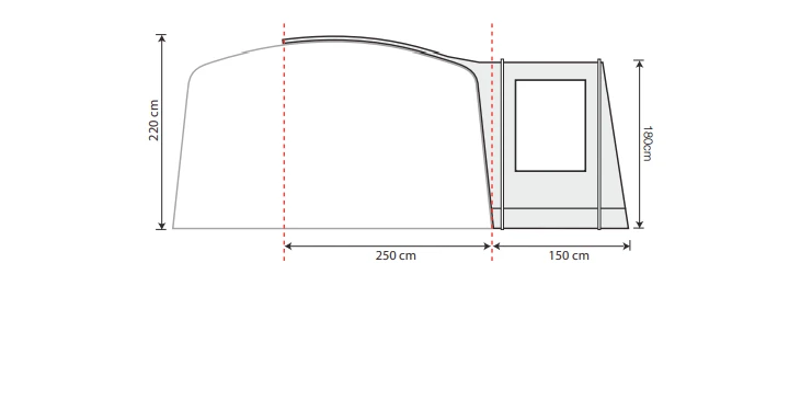 The lightweight pole and sleeve Camp Star Side Porch is the ultimate sheltered utility space to fix alongside your tent. Featuring 2 side windows, toggle in curtains and a removable PE groundsheet, this Side Porch fits snugly around the contours of your tent using a combination of carefully positioned pegging points and guy ropes. It is made specifically for cooking, storage, dining and relaxing, with the added benefit of being able to use the front door as a sun canopy in conjunction with optional Extension Canopy Poles. Whilst it is designed to fit the Camp Star 500XL, 600, and 700 tents perfectly, the universal nature of the fitting of this Side Porch means that it is not restricted to just these models and can be manipulated to fit most tunnel tents of a certain size. Â